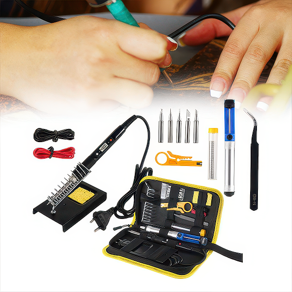Овој комплет за лемење од 15 парчиња обезбедува се што ти треба за прецизна и ефикасна работа. Прилагодливата температура на рачката за лемење ти овозможува да ја прилагодиш топлината според специфичните потреби на твојот проект, намалувајќи го ризикот од оштетување на деликатните компоненти.
