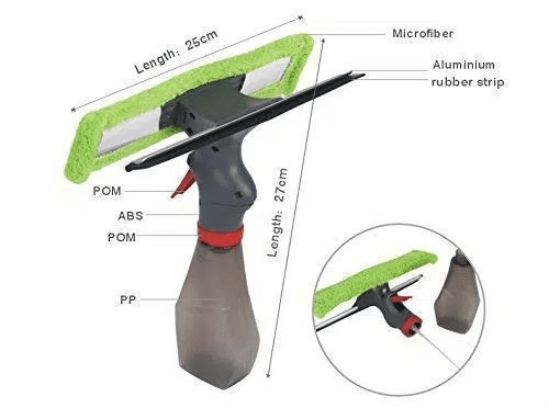 Чистачот е многу практичен и лесен за користење така што има резервоар во кој ставаш вода или средство за чистење прозорци по твој избор. Мултинамеснки е така што ќе можеш да ги чистиш прозорците, огледалата, туш кабини, плочки во бањата или кујната и другите водоотпорни површини.