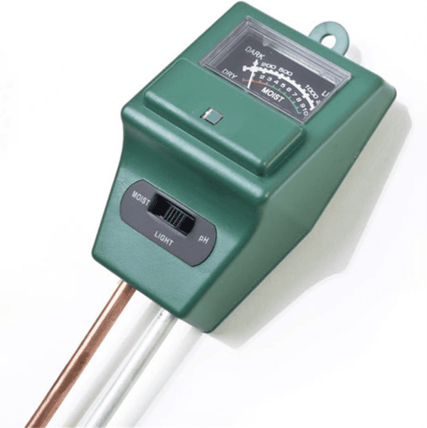 3 Во 1 тестерот за почва обезбедува сеопфатно решение за грижата за твоите растенија. Овој иновативен уред овозможува прецизно мерење на три клучни фактори за успешен развој на растенијата: влага во почвата, pH вредност и сончева светлина.