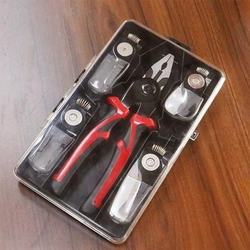 5 во 1 мултифункционалната клешта е сеопфатен алат за сите твои поправки и одржување. Овој сет вклучува пет заменливи глави: ножици за кабли, клешта за лупење, клешта за стегнување, сечила за жици и ножици, што го прави идеален за широк спектар на задачи.