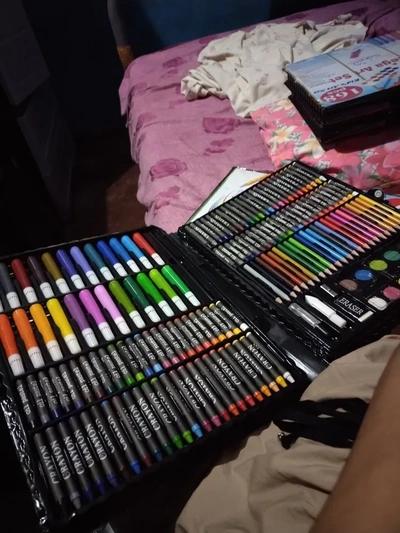Овој комплет за цртање од 168 парчиња е навистина инспиративен. Со широк спектар на моливи, боички, маркери и други алатки, моите креативни можности се неограничени. Ова е вистински поттик за мојот уметнички израз.