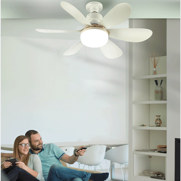 Со AeroBloom, уживајте во пријатна атмосфера во текот на целата година! Модерниот дизајн со скриени лопатки во форма на цветни ливчиња не само што изгледа прекрасно, туку и е исклучително практичен. Лустерот користи стандардна Е27 сијалица, што го прави лесен за одржување. Контролирајте ги брзината на вентилаторот и јачината на светлото со помош на далечинскиот управувач, без да станете од вашето седиште. AeroBloom е ефикасен, економичен и бесшумен, создавајќи совршена клима и амбиент во вашиот дом.