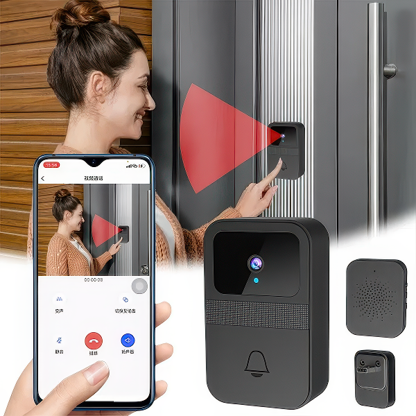 Паметниот безжичен видео домофон со интелигентни функции и HD ноќно гледање е врвниот уред за подобрување на безбедноста на твојот дом. Овој иновативен уред обезбедува континуиран надзор на твојот влез, овозможувајќи ти јасно да ги видиш и да комуницираш со посетителите преку твојот паметен телефон или таблет, дури и кога не си дома.