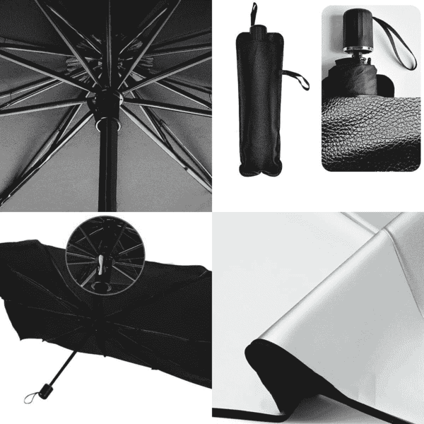 Преклопниот чадор за ветробранското стакло на автомобилот е наменет за заштита од силното сонце и штетните УВ зраци.