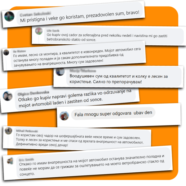 Чадорот е првенствено дизајниран за предното ветробранско стакло на возилото, но во зависност од големината и конструкцијата на вашето возило, може да се користи и за задното ветробранско стакло. Ви препорачуваме да ја проверите компатибилноста пред употреба на задното стакло.