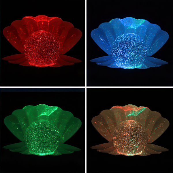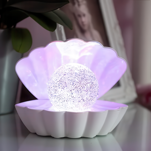 Оваа ноќна светилка со дизајн на шлолка не е само извор на светлина, туку и елегантна декорација која ќе донесе софистицираност во секој простор. Светилката во облик на морска школка со бисер во средината маѓепсува со својата суптилна промена на бојата, создавајќи смирувачка и релаксирачка атмосфера.