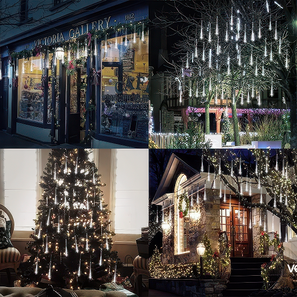 Овој сет создава неверојатен светлосен приказ, совршен за украсување дрвја, градини, дворови или прослави. Секоја LED цевка симулира паѓање на метеор, што носи елегантна и динамична атмосфера.