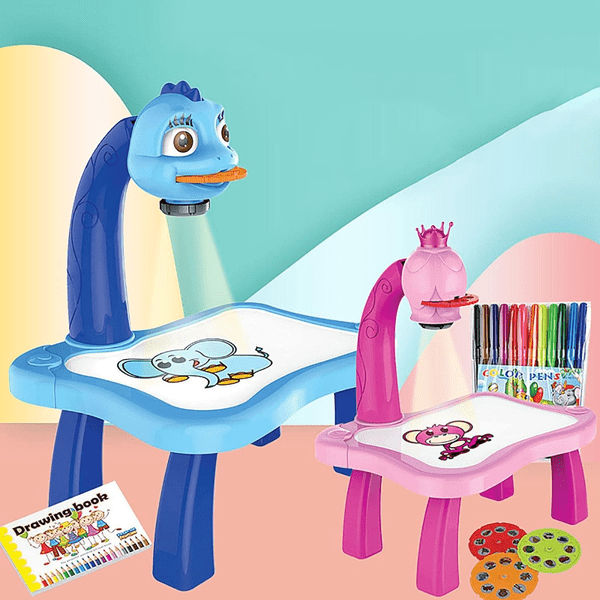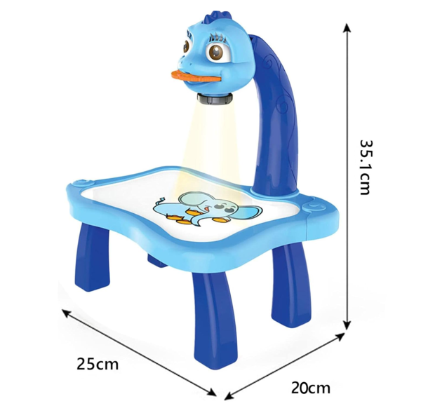 Оваа маса доаѓа со интегриран проектор кој им овозможува на децата да цртаат низ проекциите. Со широк спектар на тематски проекции, вклучувајќи животни, возила, букви, бројки и друго, децата ќе уживаат во бескрајна инспирација и забава додека ги создаваат своите уметнички ремек-дела.