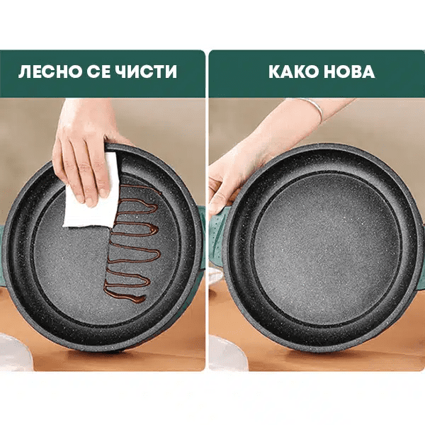 Лесна и едноставна за користење. Лесна е за употреба, подготовката на храната е брза во оваа тава, основата не се лепи, лесно се одржува.