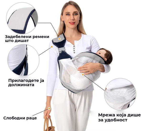 ✅ Слободни раце за мајките и татковците - Овој носач за бебиња им овозможува на родителите да имаат слободни раце додека се во движење. Можеш да ги извршуваш секојдневните задачи, да шеташ или да купуваш со твоето бебе блиску до тебе.