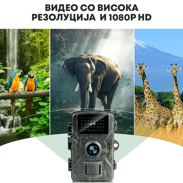 ✅ Видео со висока резолуција и HD - Снимањето во резолуција од 12MP и видео формат 1080P HD обезбедува кристално јасни слики и остри видеа. Секој детал ќе биде снимен со исклучителна прецизност, обезбедувајќи ти висококвалитетен материјал за анализа и уживање.