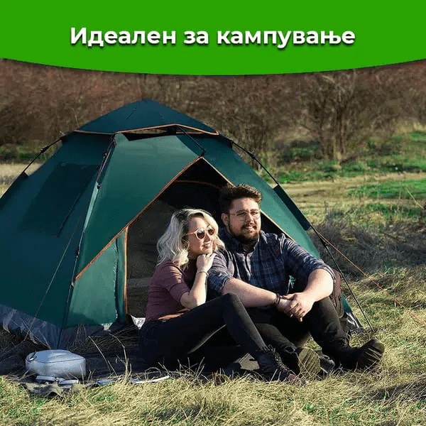 ✅ Двослојна заштита - Покрај шаторот, кој сам по себе е издржлив, тој е опремен и со надворешен слој за максимална заштита од ветер и други надворешни влијанија.