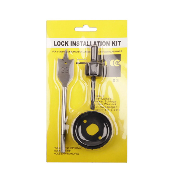 Овој стандарден комплет за инсталирање на брава е суштинска алатка за секој мајстор или ентузијаст кој сака лесно и прецизно да ги инсталира бравите на вратите. Со својот компактен и практичен дизајн, овој комплет е идеален за професионалци и хобисти кои сакаат да ја завршат работата брзо и ефикасно.