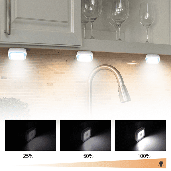 Нашите безжични LED светла користат 3 x AAA батерии кои обезбедуваат долг работен век. Точното времетраење зависи од фреквенцијата на користење, но во просек, батериите траат со месеци пред да треба да се заменат.