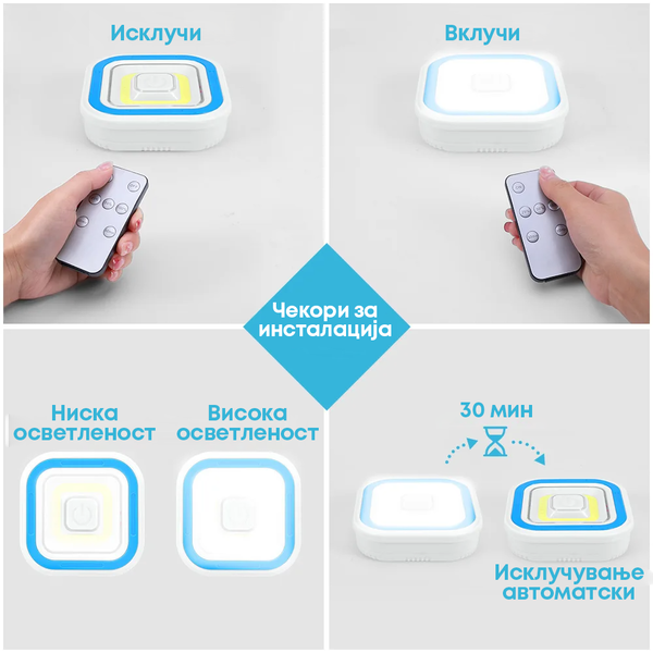 Ти ги претставуваме безжичните LED светилки, идеално внатрешно осветлување кое може да се инсталира без кабли и дупчење. Совршен спој на паметна технологија, заштеда и ефикасност.