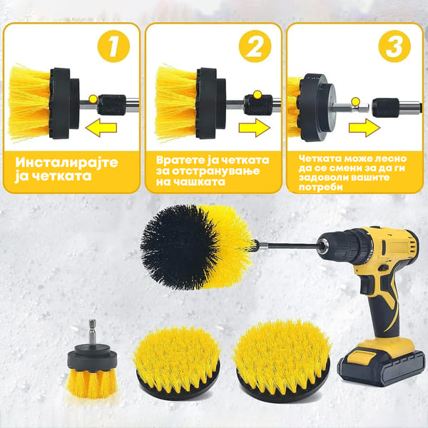 Сетот вклучува 5 различни типови на четки, секоја наменета за одредени површини и тешко достапни места. На овој начин, можете ефикасно да ги исчистите сите делови од вашиот дом без напор.