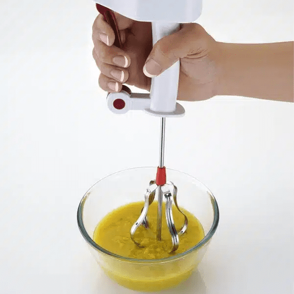 Заштедува труд и време, додека работата се врши многу побрзо од обичен миксер. Не е потребна струја или батерија. Едноставно притисни ја рачката и маталката од нерѓосувачки челик ќе почне да ротира. Совршен за мешање сосови, јајца, тесто за колачи, микс за палачинки и многу повеќе!