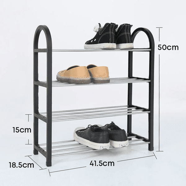 Има 4 нивоа на кои можеш да поставиш чевли, во просек по три пара чевли се вклопуваат на секое ниво. Со оваа цврста и издржлива практична сталажа можеш уредно да организираш до 8-10 пара чевли.