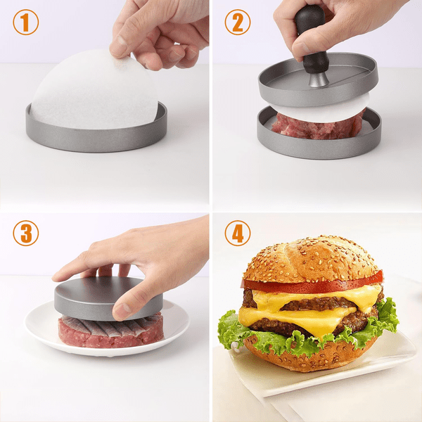 ✅ Совршени форми - Секогаш кога ја користиш нелепливата преса за плескавици, добиваш перфектно обликувано парче без ризик да се кине или да се залепи за пресата, правејќи ги твоите плескавици да изгледаат и да имаат неодолив вкус.