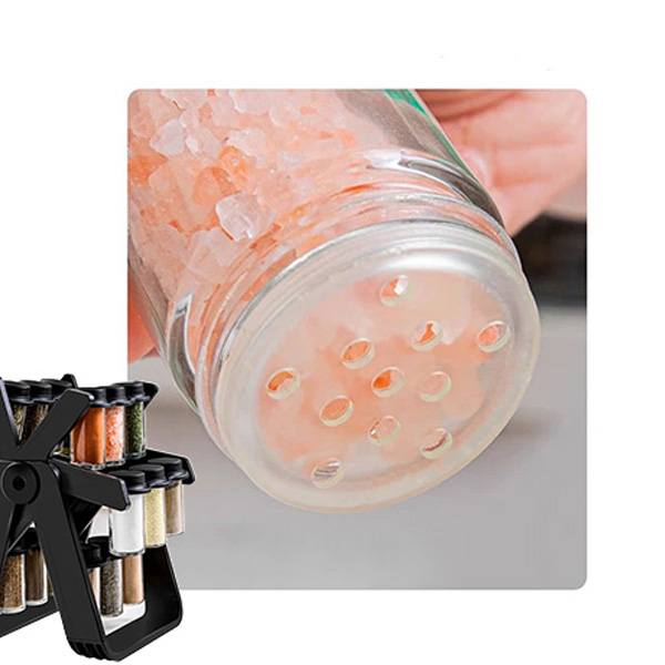 Паметниот дизајн на ротирачкото панорамско тркало го олеснува пристапот до зачините - само сврти го тркалото и избери го зачинот што ти треба, без да пребаруваш низ фиоките и полиците. Шишињата се проѕирни, што ти овозможува веднаш да видиш кој зачин го бараш, додека тесните капаци гарантираат долготрајна свежина и заштита од влага.