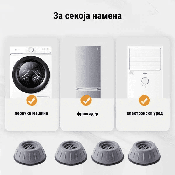 Со нив машината ќе има стабилност и подолг работен век, а во исто време ќе спречи таложење на влага и ќе ти го олесни чистењето на прашината под машината. Постави ги за помалку од 5 минути целосно сам и заборави на вревата на центрифугата засекогаш!
