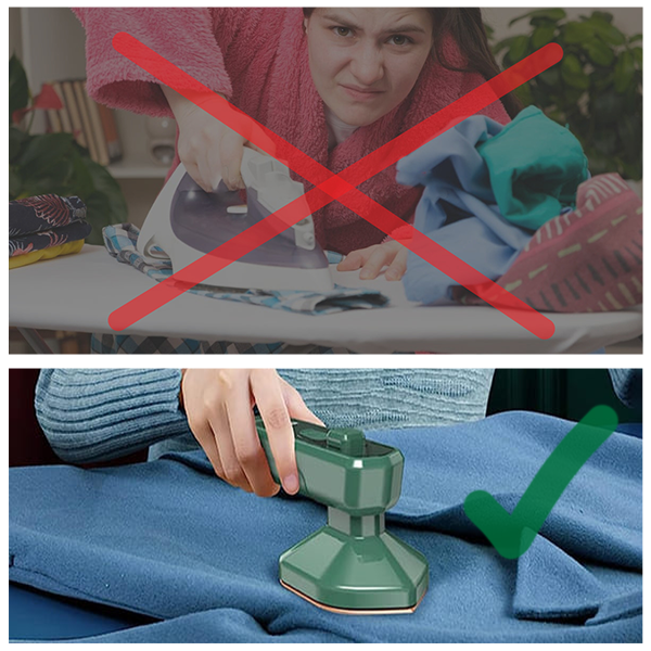 ✅ Безбедна - Рачната пегла е безбедна за сите видови ткаенини и пегла до пет пати побрзо од колку со обичното пеглањето.