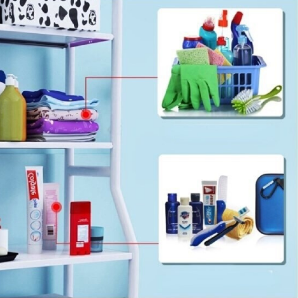 Вертикално Складирање: Специјално конструирани да се постават над тоалетната школка или машината за перење, со што заштедуваат драгоцен поден простор.