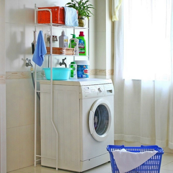 🧼 За организирана хигиена – Чувајте ги детергентите и омекнувачите уредно наредени над машината за перење.
