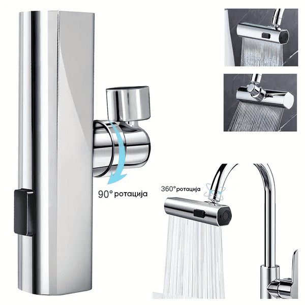 Овој револуционерен додаток за чешма внесува нова димензија на ефикасното миење садови и овошје во твојата кујна. Со својот уникатен дизајн кој овозможува водата да прска како водопад, овој додаток го прави чистењето на чиниите, чашите и приборот неспоредливо полесно и поефикасно од кога било досега.