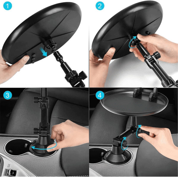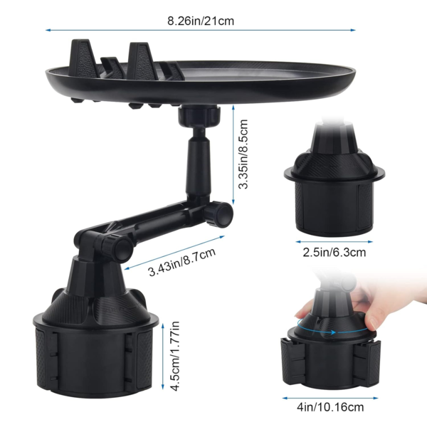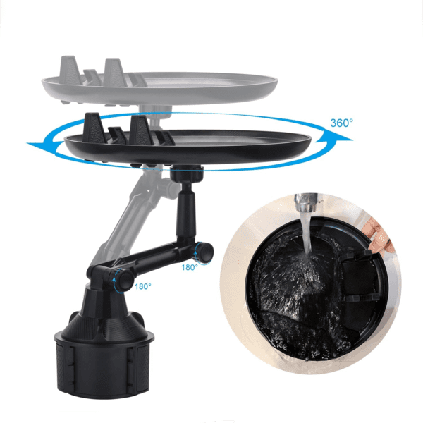 Со универзален дизајн, овој држач може да смести различни големини на храна, приспособувајќи се на твоите потреби. Исто така, прилагодливоста од 360° ти овозможува лесно да го прилагодиш аголот на послужавникот за да постигнеш оптимална удобност додека возиш.