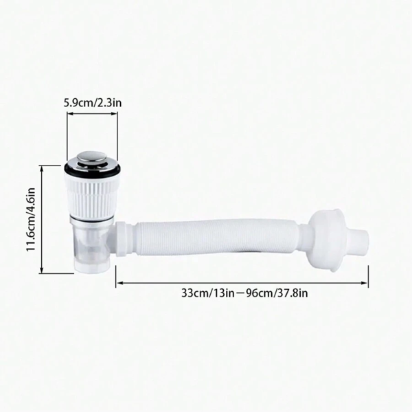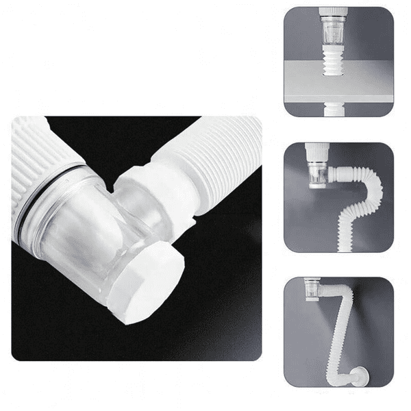 ✅ Ефикасно одводнување - Со својот прецизно дизајниран механизам, овој сифон обезбедува брзо и ефикасно одводнување на водата од цевките, спречувајќи блокирање и одржувајќи го протокот на вода.