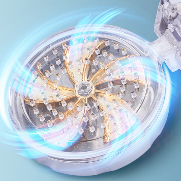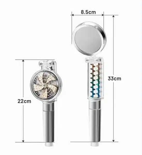 Тајната лежи во специјалниот вентилатор кој го забрзува протокот на вода, ја подобрува јачината на притисокот за дури 200% и создава прекрасна водена спирала која ги масира и релаксира мускулите на секој дел од телото.
