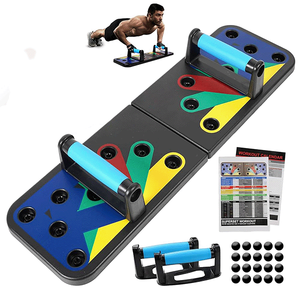 Дали сакате да го зацврстите горниот дел од телото, но ви е тешко да ги активирате сите мускули со традиционални склекови? Ви ја претставуваме 🏋️ PushUpPro – ДАСКА ЗА СКЛЕКОВИ СО 9 РАЗЛИЧНИ ПОЗИЦИИ – вашето совршено решение за комплетен тренинг! Оваа иновативна даска е дизајнирана да ви помогне прецизно да ги таргетирате градите, рамената, грбот и трицепсите, со што добивате професионални резултати во удобноста на вашиот дом.