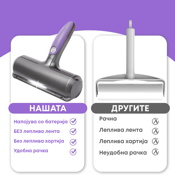 ✅ Разновидно чистење - Не ограничено само на влакната од домашни миленици, овој чистач ефикасно се справува со прашина, влакненца и други остатоци, што го прави разноврсна алатка за одржување на чист дом.