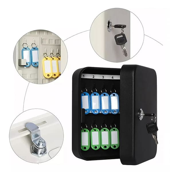 ✅ Безбедност и заштита - Кутијата за клучеви обезбедува безбедно место за складирање на клучевите, намалувајќи го ризикот од губење или кражба. Со безбедносните механизми, твоите клучеви се секогаш заштитени.