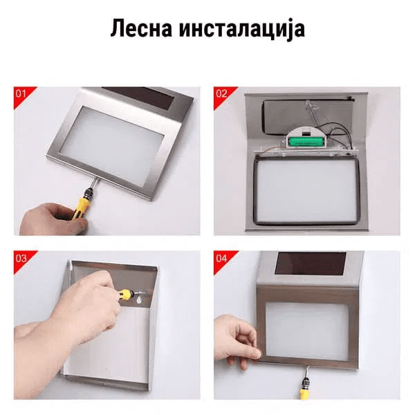 Лесна за поставување – Светилката е лесна за инсталирање, можеш да ја залепиш на вратата, капијата, ѕидовите, гаражата или каде што сакаш.