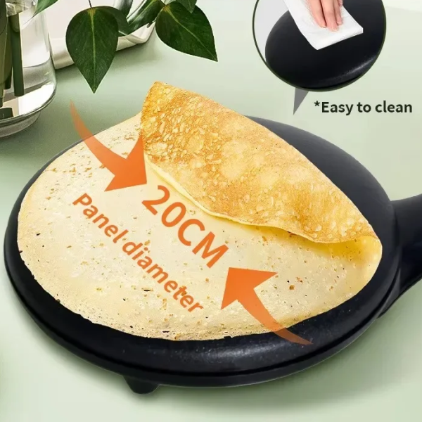 Брзо и Рамномерно Печење: Вградениот грејач овозможува целата површина да биде подеднакво топла, гарантирајќи дека секоја палачинка ќе биде испечена до совршенство за миг.