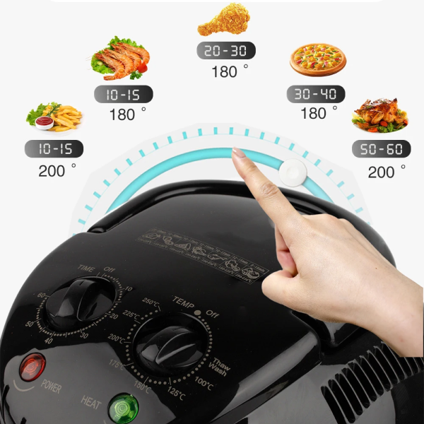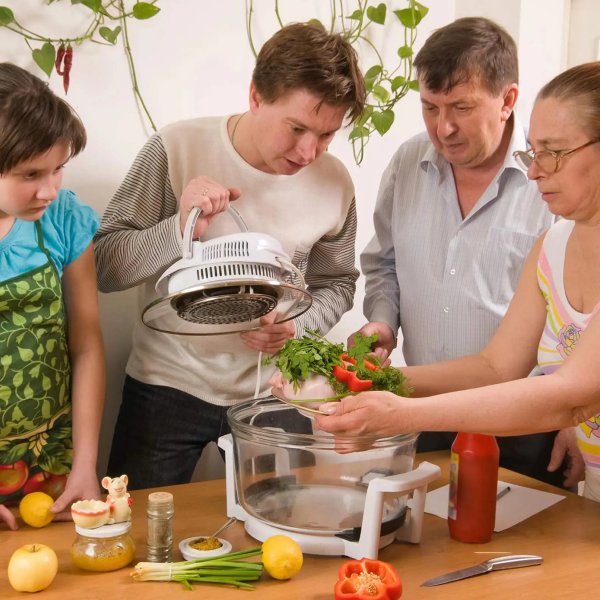 Здравје и вкус: Користи технологија на топол воздух за пржење, печење и скара со минимално масло.