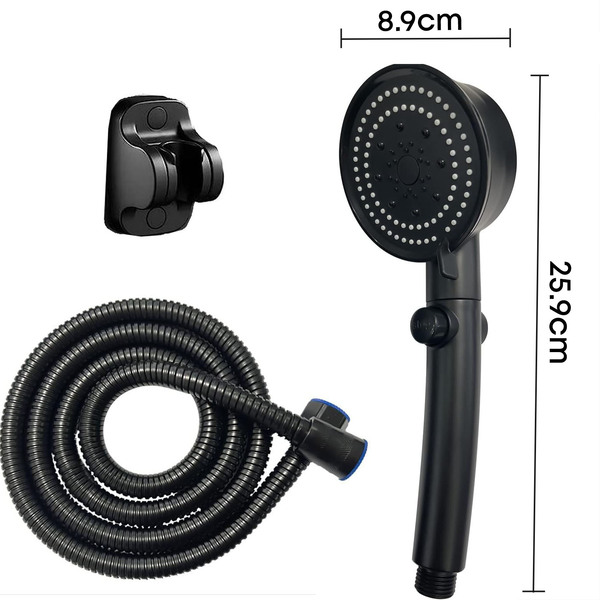 Уживај во модерниот изглед на твојата бања и безгрижно туширање со нашиот квалитетен туш со црево и држач! Уникатен производ кој ќе го трансформира твоето секојдневно туширање. Со три режими на прскање и паметен прекинувач за вклучување/исклучување, оваа глава за туширање ќе те воодушеви со својата функционалност, естетика и практичност.