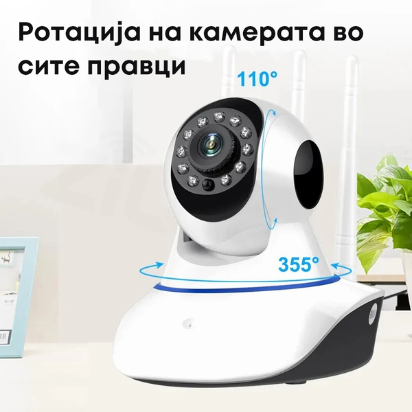 ✅ Ротација на камерата во сите правци - Камерата е во форма на топка која може да ротира 110 степени нагоре и надолу и 355 степени лево и десно. Совршено го доловува секој агол од собата!