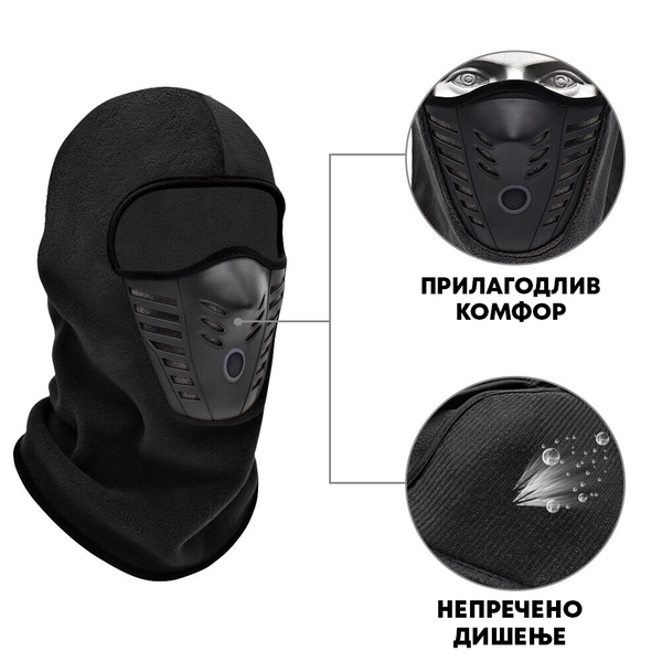 Главната карактеристика на оваа маска е нејзината способност да обезбеди целосна покриеност од глава до врат, заштитувајќи те од студ, ветер и снег. Висококвалитетниот материјал штити од непријатни временски услови, правејќи го твоето искуство на патеката удобно и безгрижно.
